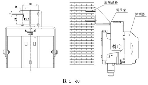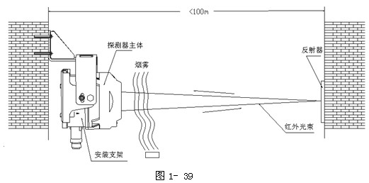 將探測器與反射器相對安裝在保護空間的兩端且在同一水平直線上,外形安裝圖如圖1-39所示: