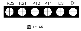 當(dāng)使用觸點信號輸出信息時,探測器上的堵頭需換成過線接頭(需另外購買過線接頭),火警無源輸出常開觸點K11、K12和故障無源輸出常開觸點K21、K22的引線需從過線接頭引出,探測器對外接線端子示意圖如圖1-45所示: