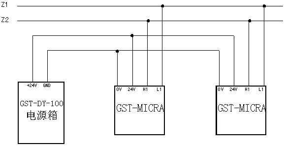 海灣GST-MICRA空氣采樣式感煙火災(zāi)探測器與火災(zāi)報警控制器連接,構(gòu)成火災(zāi)自動報警系統(tǒng)的連接圖如圖: