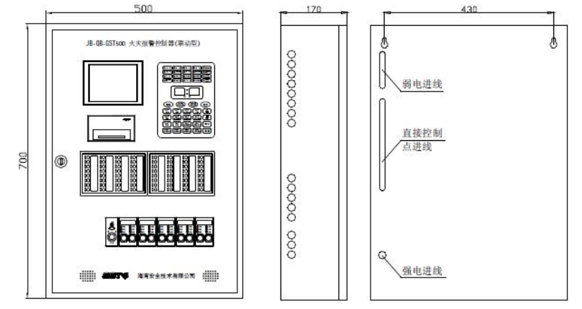JB-QB-GST500 型控制器的外形尺寸示意圖如圖