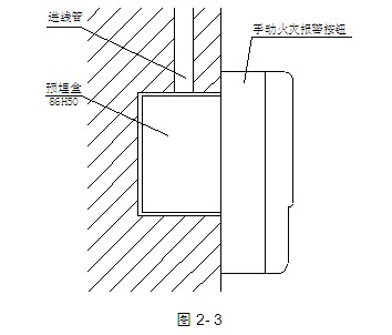 手動(dòng)火災(zāi)報(bào)警按鈕底盒背面和底部各有一個(gè)敲落孔,可明裝也可暗裝,明裝時(shí)可將底盒裝在86H50預(yù)埋盒上,明裝示意圖見圖2-3;暗裝時(shí)可將底盒裝進(jìn)埋入墻內(nèi)的YM-02C型專用預(yù)埋盒里(安裝方式見第二章1.5節(jié)YM-02C使用方法)。