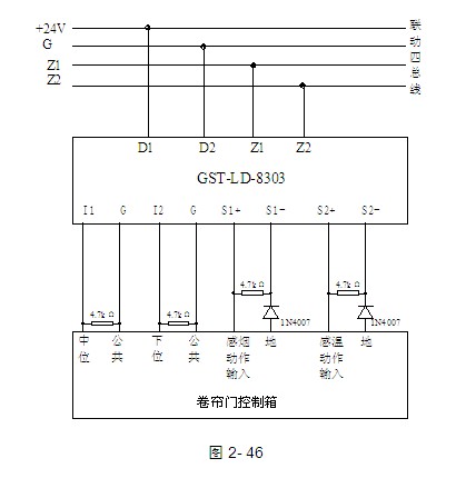 b.GST-LD-8303海灣輸入/輸出模塊與GST-LD-8302A型模塊組合連接的方法如圖2-48所示: