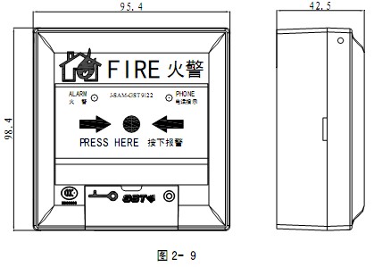 手動火災報警按鈕外形示意圖如圖2-9