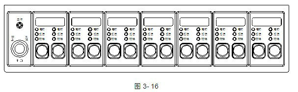 GST-LD-KZ014直接控制盤由4路、6路燈鍵板和4路、6路輸出板組成,燈鍵板與輸出板通過16P和10P數(shù)據(jù)線連接,其面板示意圖如圖3-16所示: